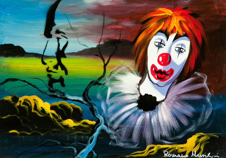 Romano Mussolini Pagliaccio Olio su tela, cm. 50x70 Firmato in basso a...