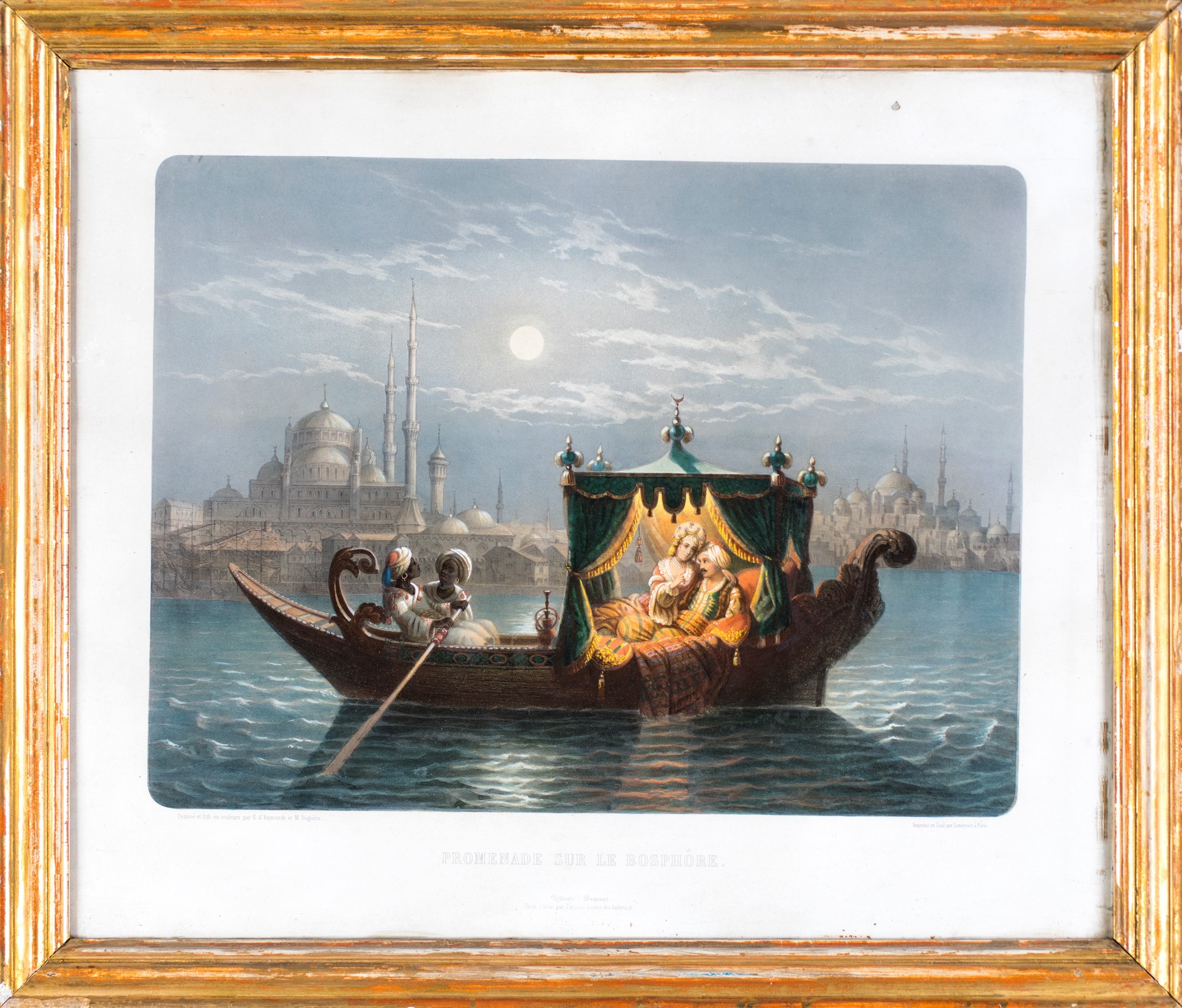 Notturno in barca sullo stretto di Istanbul, fine del XIX secolo F2, litografia a colori , 37x49 la parte stampata