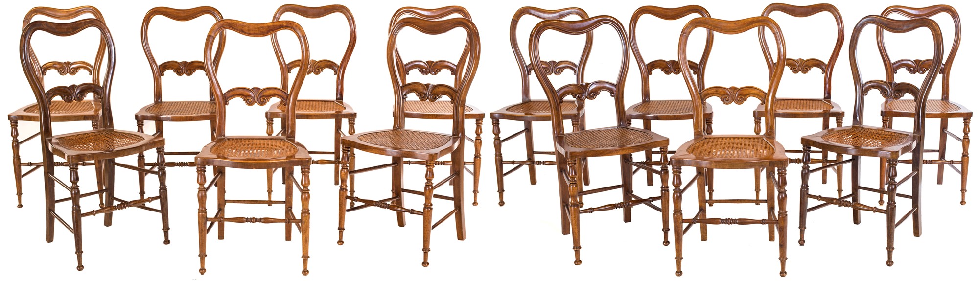Quattordici sedie in noce, inizio XX secolo F2, , 87x40x38
