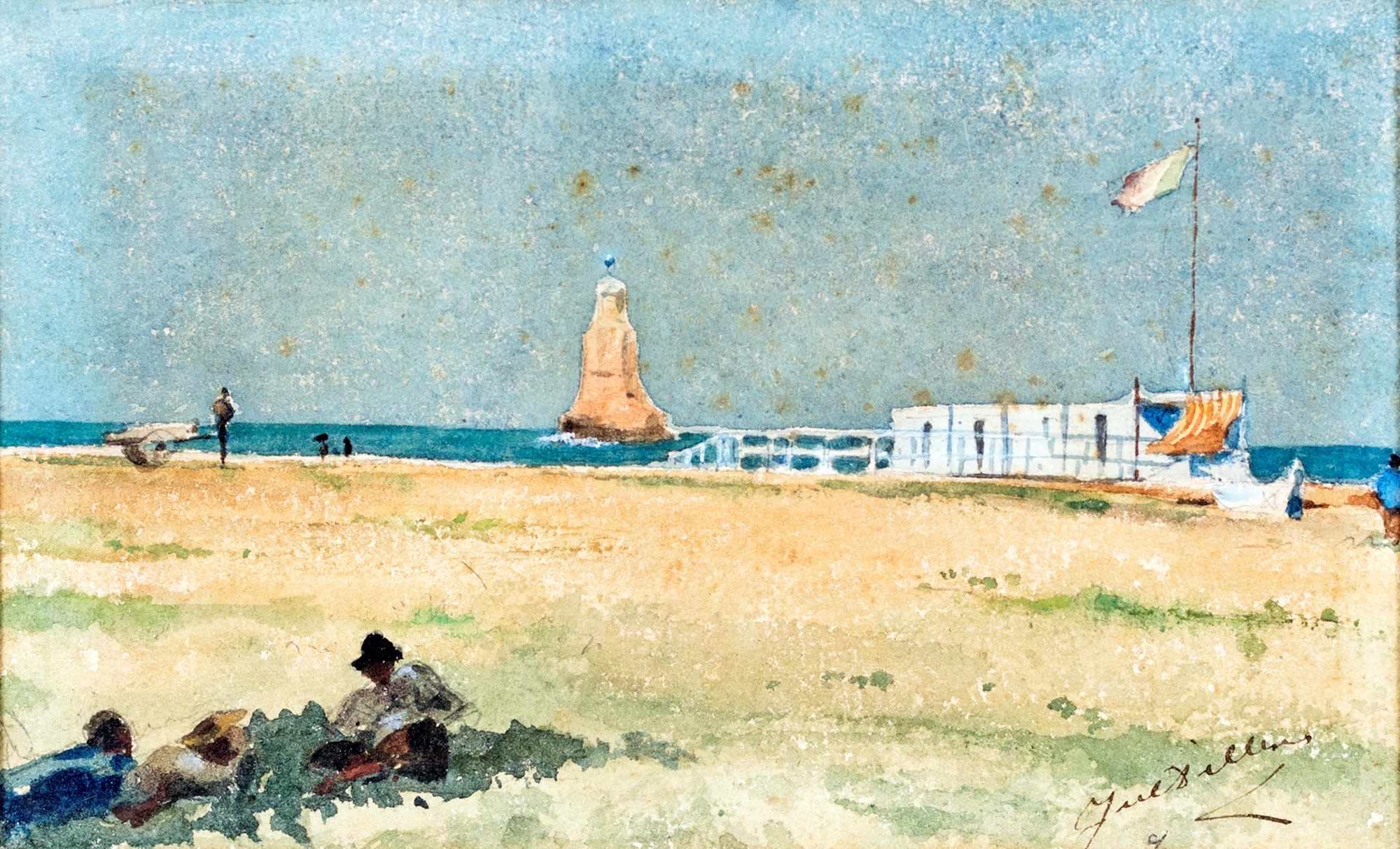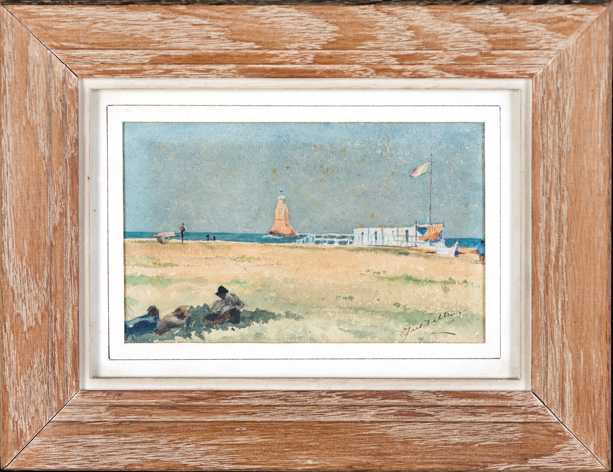Juliaan Dillens Anversa 1849-Saint-Gilles Bruxelles 1904, Scorcio di una spiaggia belga F2, acquerello su carta, 11x19