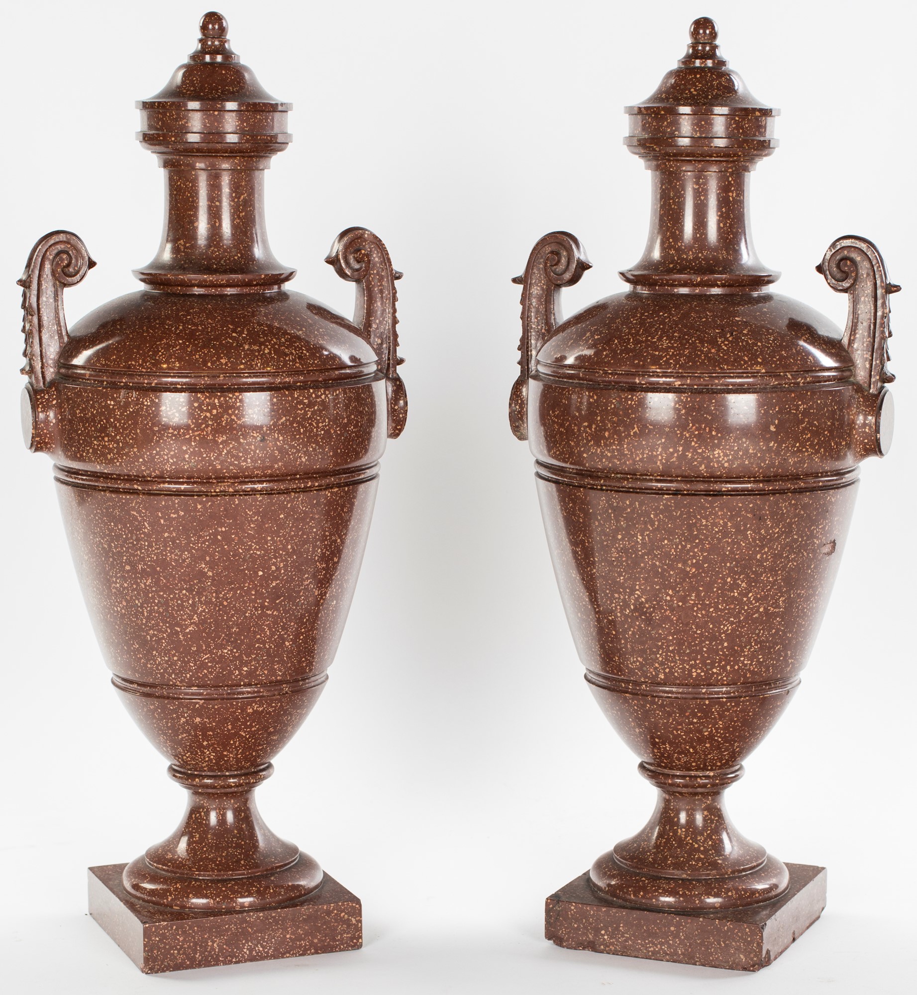 Coppia di vasi in scagliola ad imitazione del porfido F2, , altezza cm 75