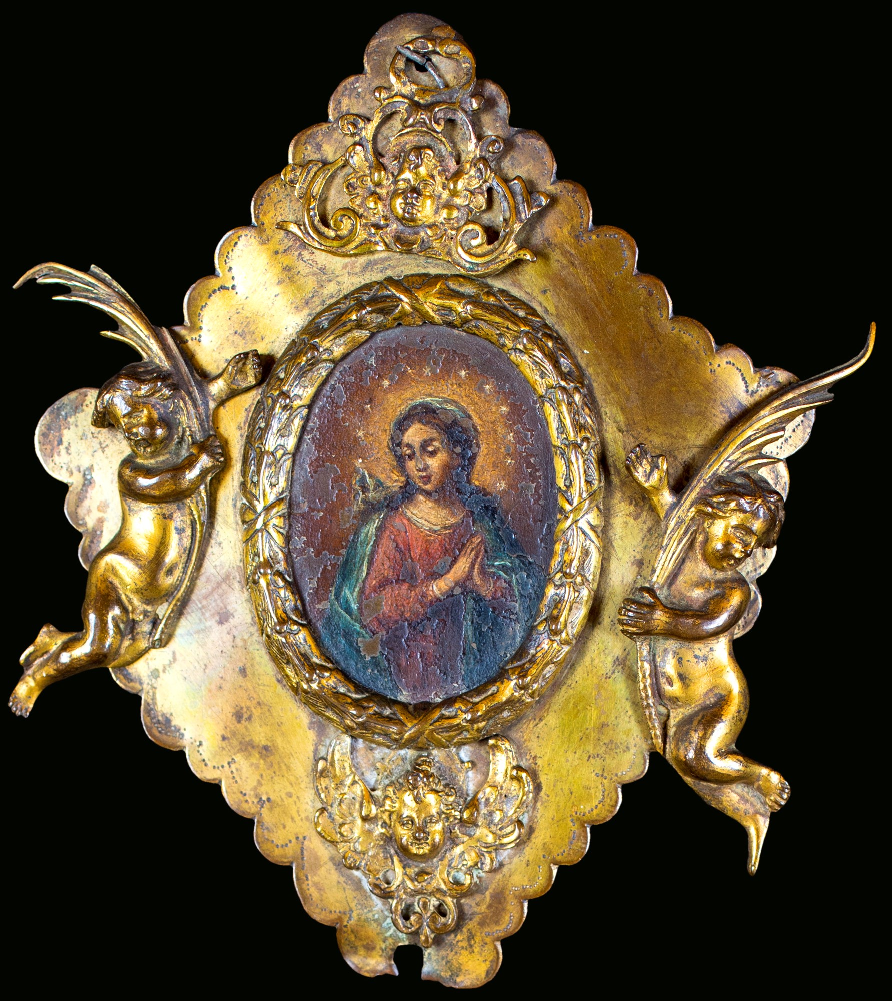 Placca devozionale in rame dorato, XVIII secolo F2, , 18x16 - la miniatura 7x4,5
