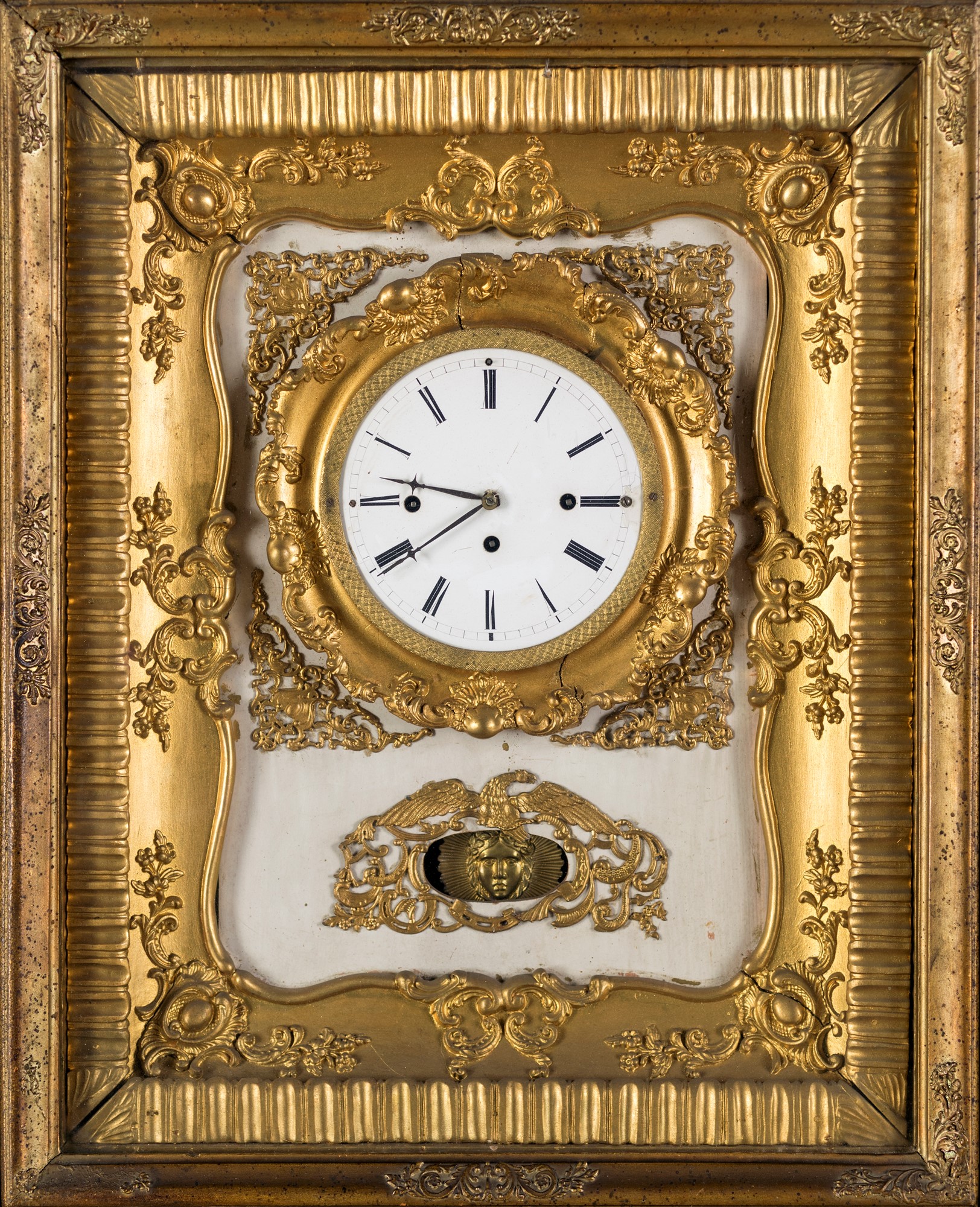 Orologio da muro in legno dorato, Austria, XIX secolo F2, , 55x44x15