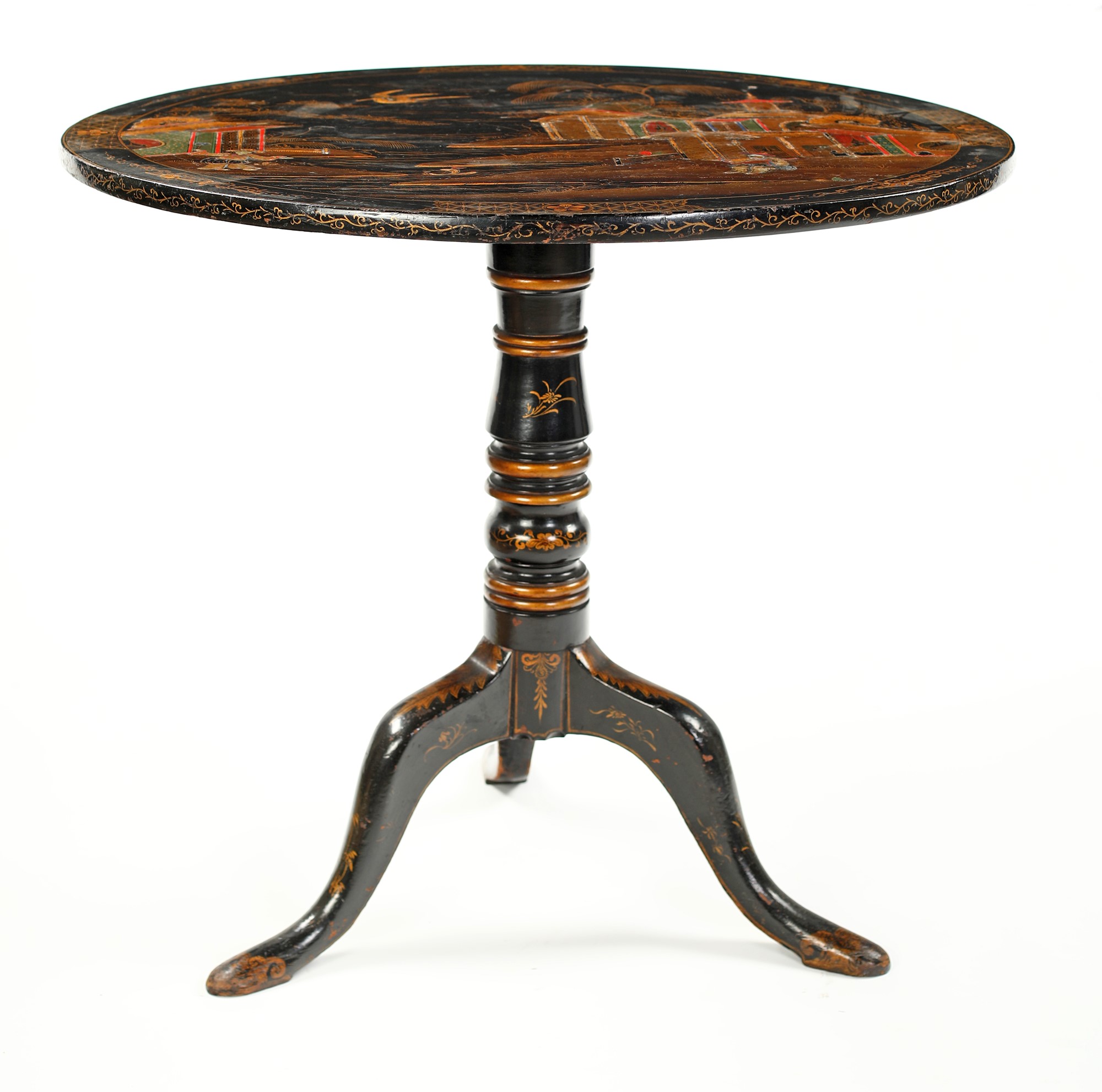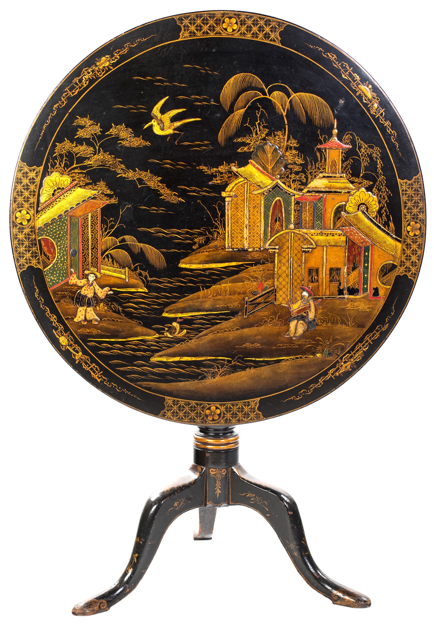 Tavolino in legno laccato nero, Inghilterra XIX secolo F2, , diametro cm 82