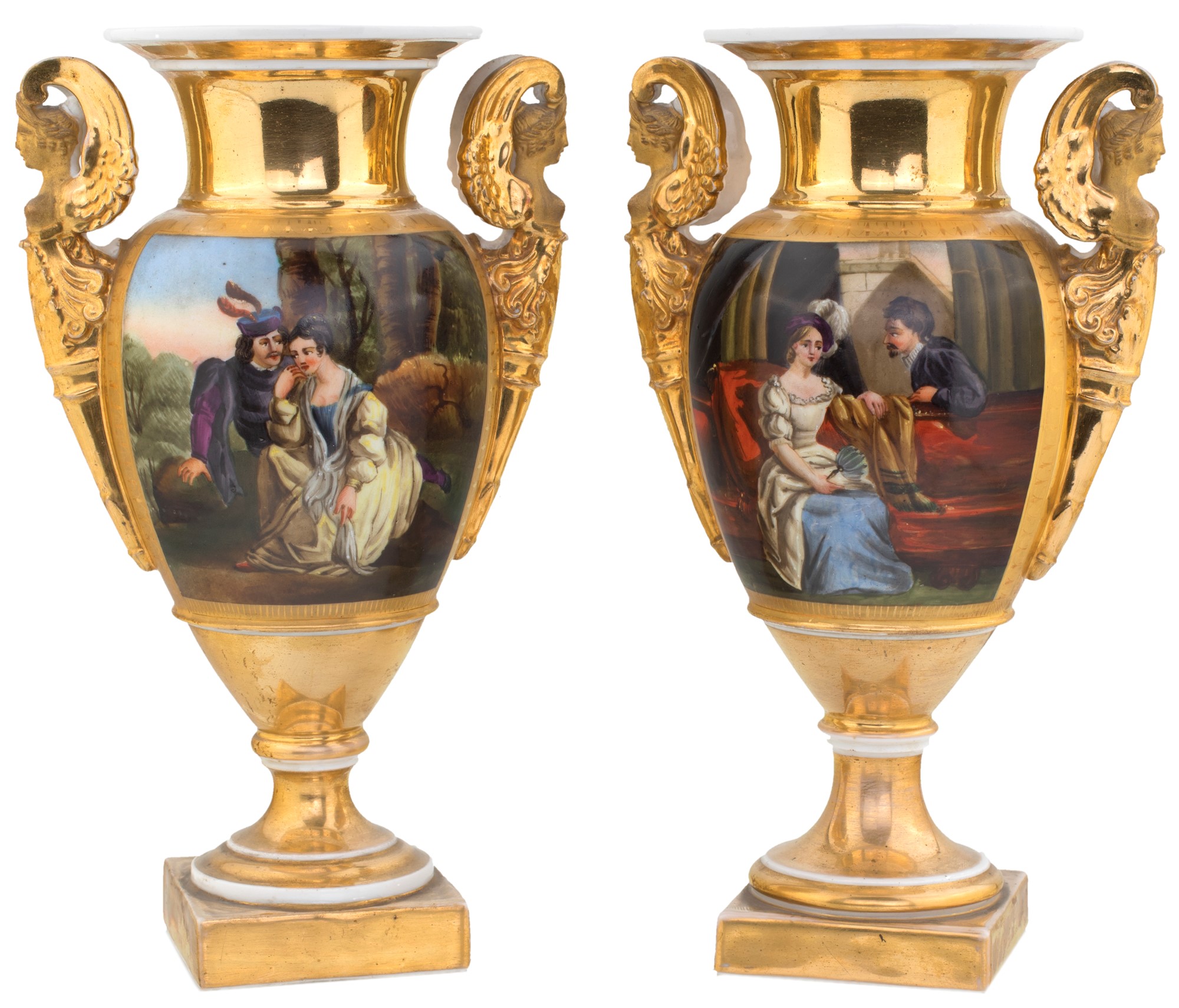 Coppia di vasi in porcellana policroma e dorata, XIX secolo F2, , altezza cm 29