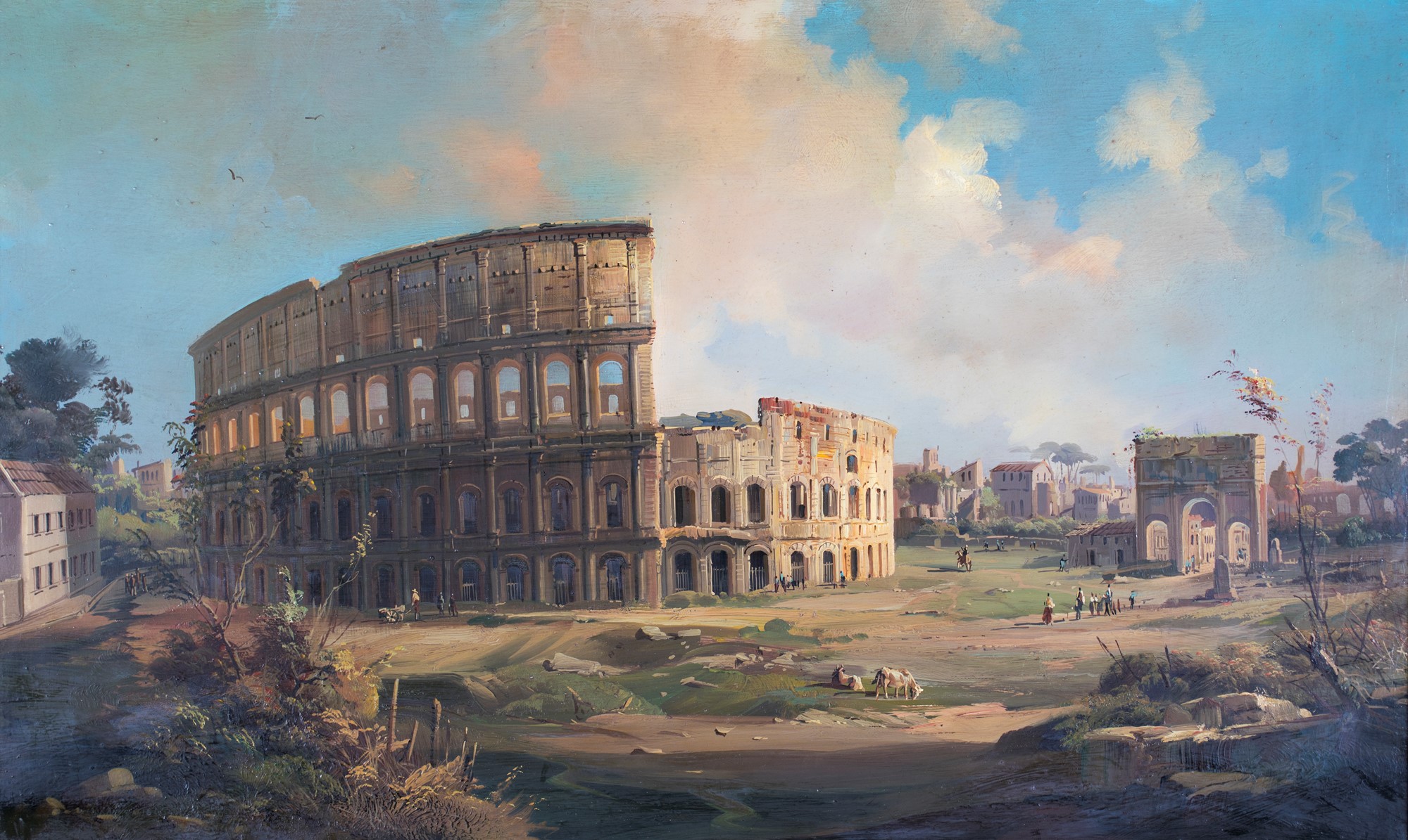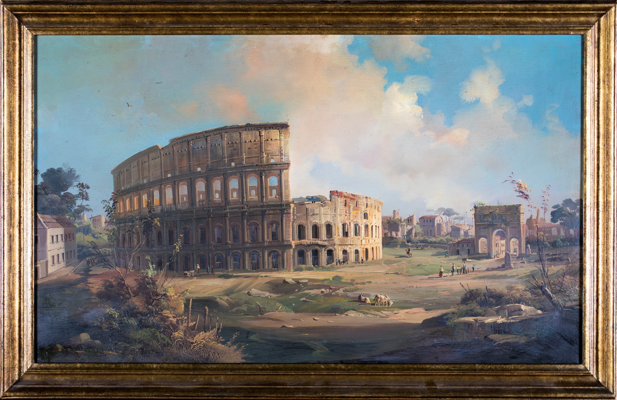Pittore del XIX/XX secolo , Veduta del Colosseo F2, olio su tela, 60x101