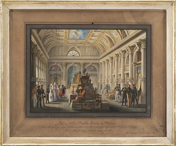 Alessandro Sanquirico "Salone della nobile Società in Milano" 1837 tecnica mista