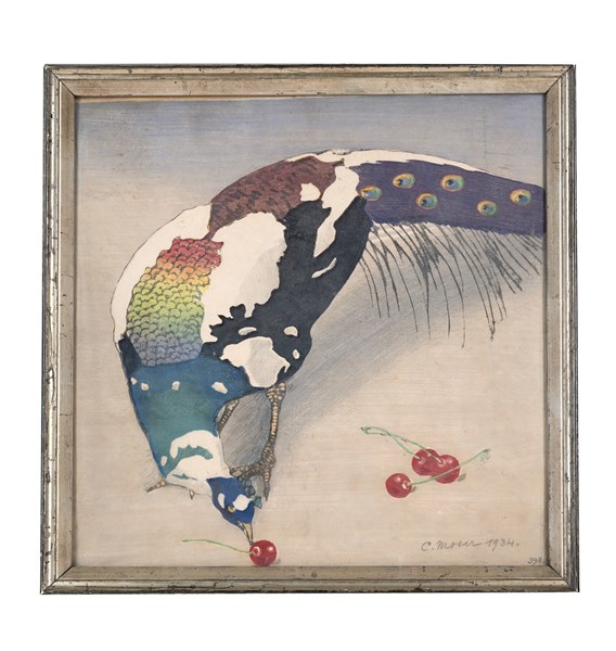 Carl Moser "Pavone" 1934 xilografia a colori su carta japon (cm 37x37) Firmata,