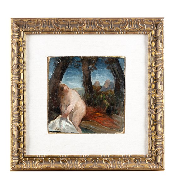 Eso Peluzzi "Susanna e i vecchioni" 1937 olio su tela (cm 18x18) Firmato in bass