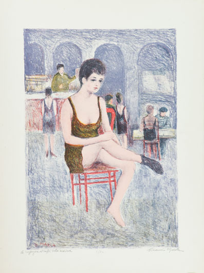 Giovanni March La ragazza al caffè della marina Litografia su carta, cm. 70x50, es. 3/70 Firma in basso a destra, titolo in basso a sinistra, tiratura in basso al centro.
