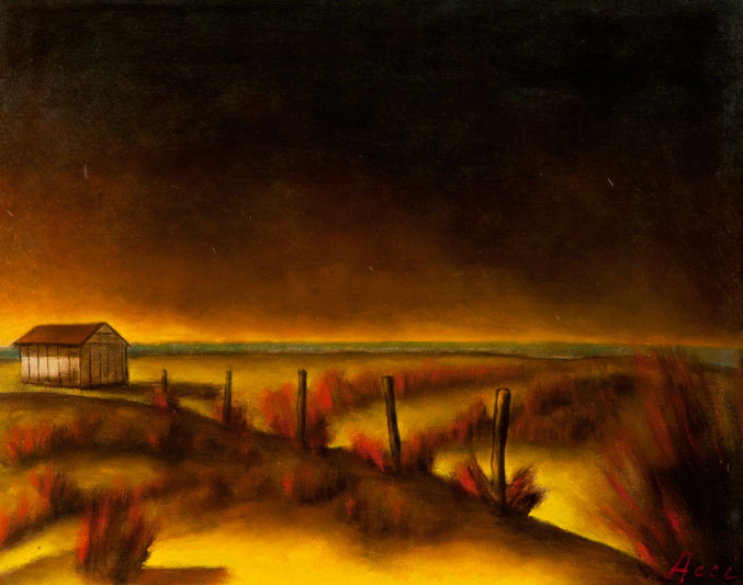 Giovanni Acci Marina, 1977 Olio su cartone telato, cm. 40x50 Firmato in basso a destra. Sul verso: firma, data, titolo e dedica a persona.