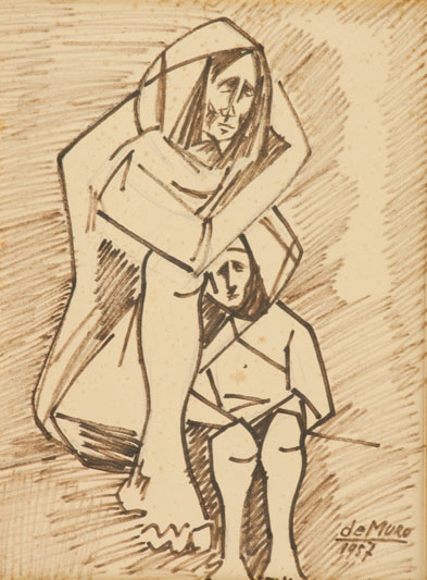 Antonio De Muro Figure, 1957 Pennarello su carta, cm. 33x25 La carta presenta fioriture. Firma e data in basso a destra.