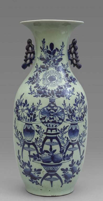 Vaso in porcellana bianca e blu a decoro di vasi con fiori Cina fine sec.XIX