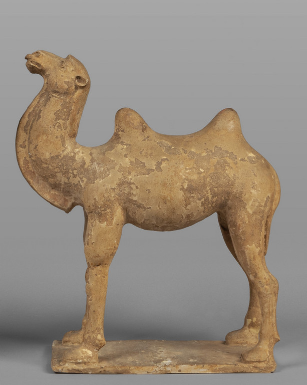 Cammello in terracotta invetriata 'Tang' tracce di policromia Cina
