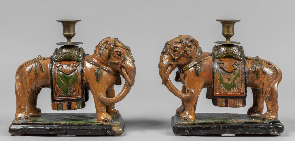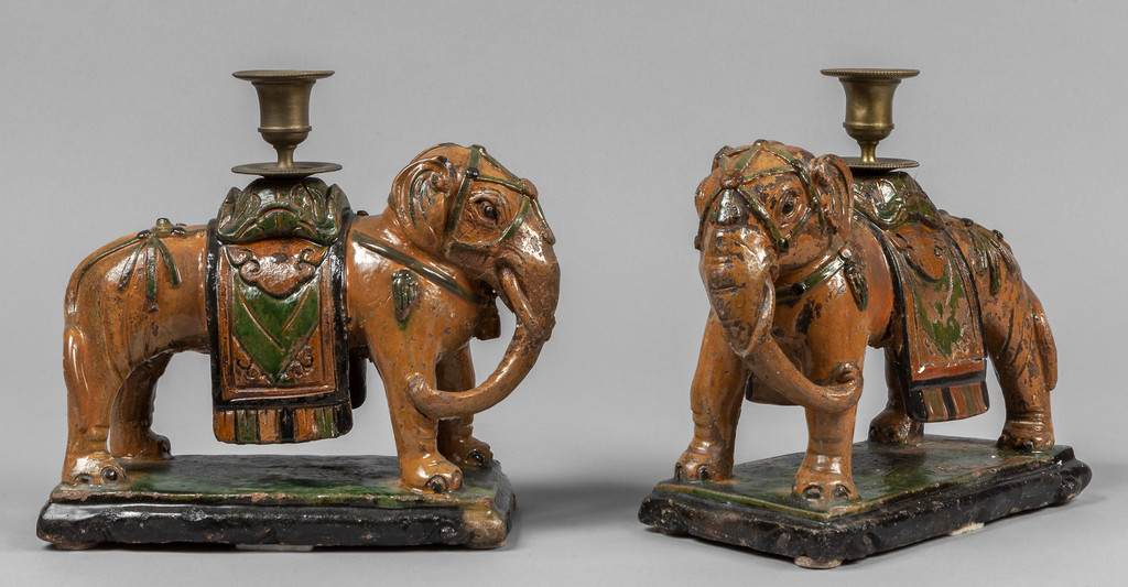 Coppia di elefanti in gres smaltato e policromato Cina sec.XVII/XVIII