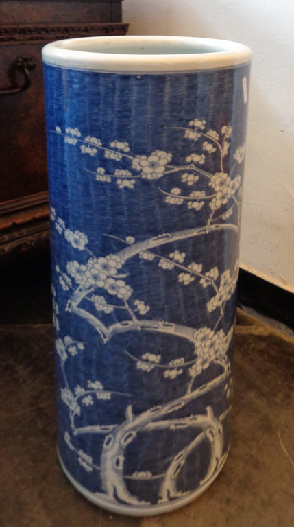 Portaombrelli in porcellana di Cina con decorazione a fiori bianchi su fondo azzurro