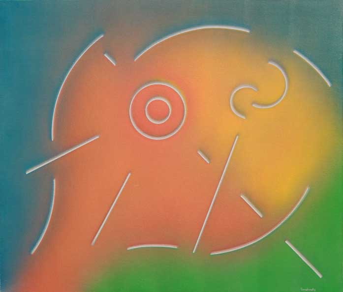 Stanley TOMSHINSKY New York 1935 - Milano 2004 Changing dimensions, 1973 Olio su tela cm 60 X 70 Autentica dell’artista su fotografia, in data ottobre 1994 Firma ‘Tomshinsky’ (in basso a destra) Firma, data, titolo ‘Tomshinsky, 1973, Milano, Changing dimensions’ (al retro)