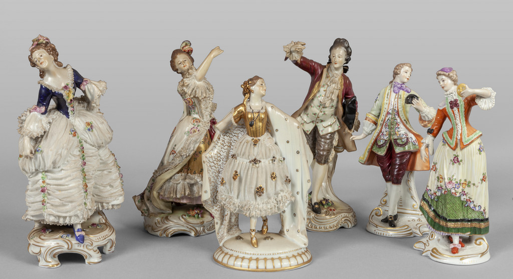 Sei statuine in porcellana policroma di Capodimonte (difetti e mancanze)