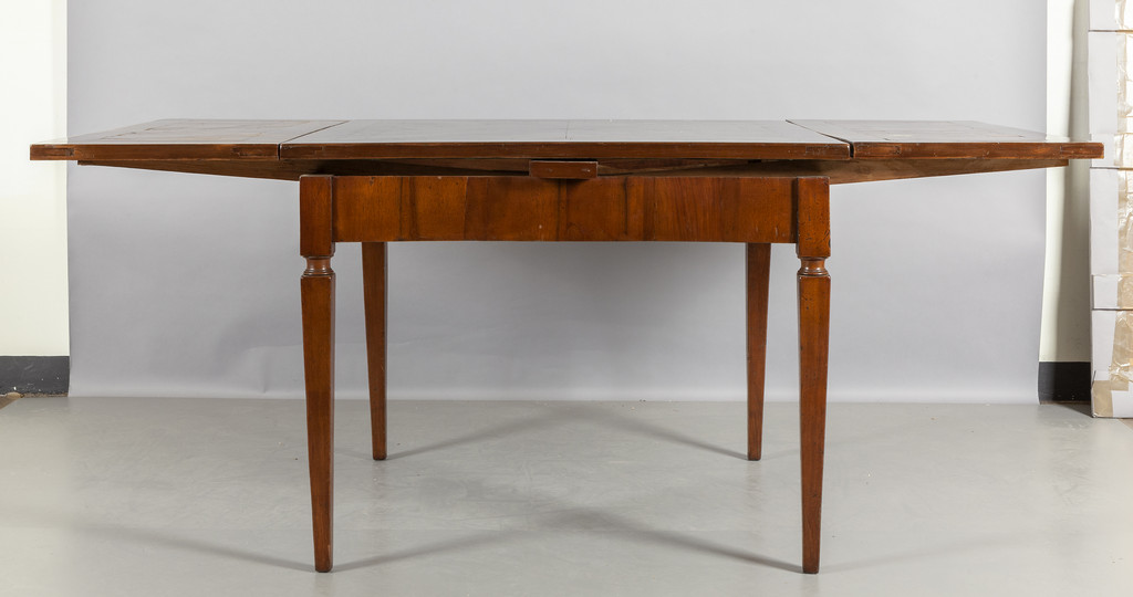 Tavolo da pranzo apribile lastronato in noce e palissandro Piacenza inizi sec.XIX