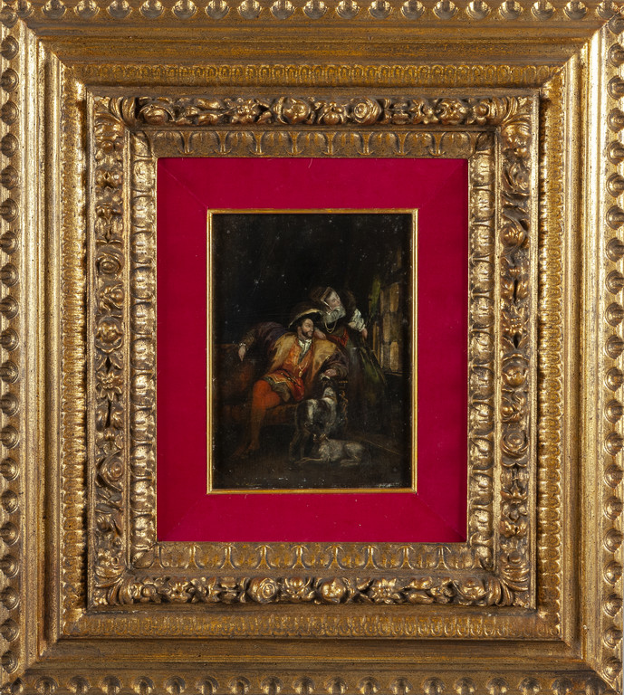 Scuola inglese sec.XIX 'Gentiluomo con cane' olio su tavoletta