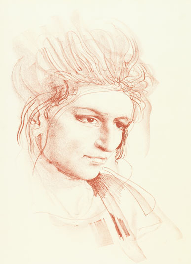 Pietro Annigoni Volto Litografia su carta, cm. 75x55, es. I/XXX Firma in basso a destra, tiratura in basso a sinistra.