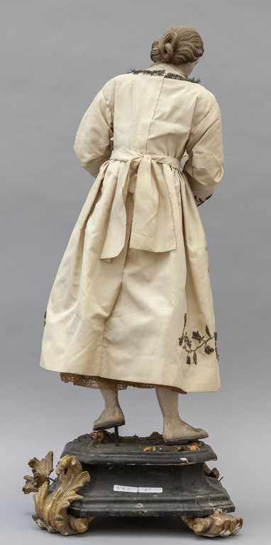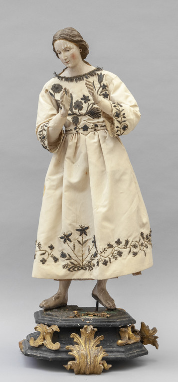 Santa scultura in legno policromo poggiante su base in legno ebanizzato con foglie dorate Roma inizi sec.XVIII