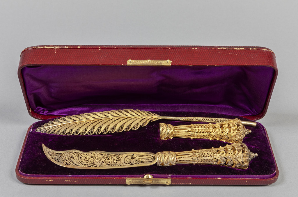Servizio da scrittoio in filigrana d'argento vermeille inizi sec.XX