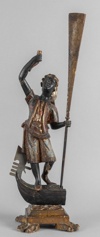 Moretto gondoliere scultura in legno intagliato dorato e laccato in policromia Venezia sec. XX