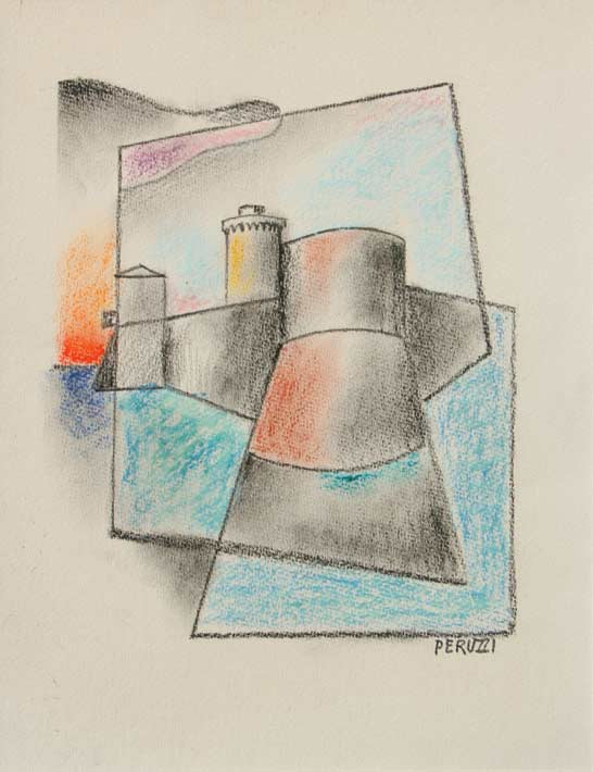 Osvaldo PERUZZI Milano 1907 - Milano 2004 Fortezza, 1988 Pastelli colorati su carta cm 29 X 22 Autentica dell’artista su fotografia Firma ‘Peruzzi’ (in basso a destra) Etichetta Galleria San Carlo, Milano (al retro)