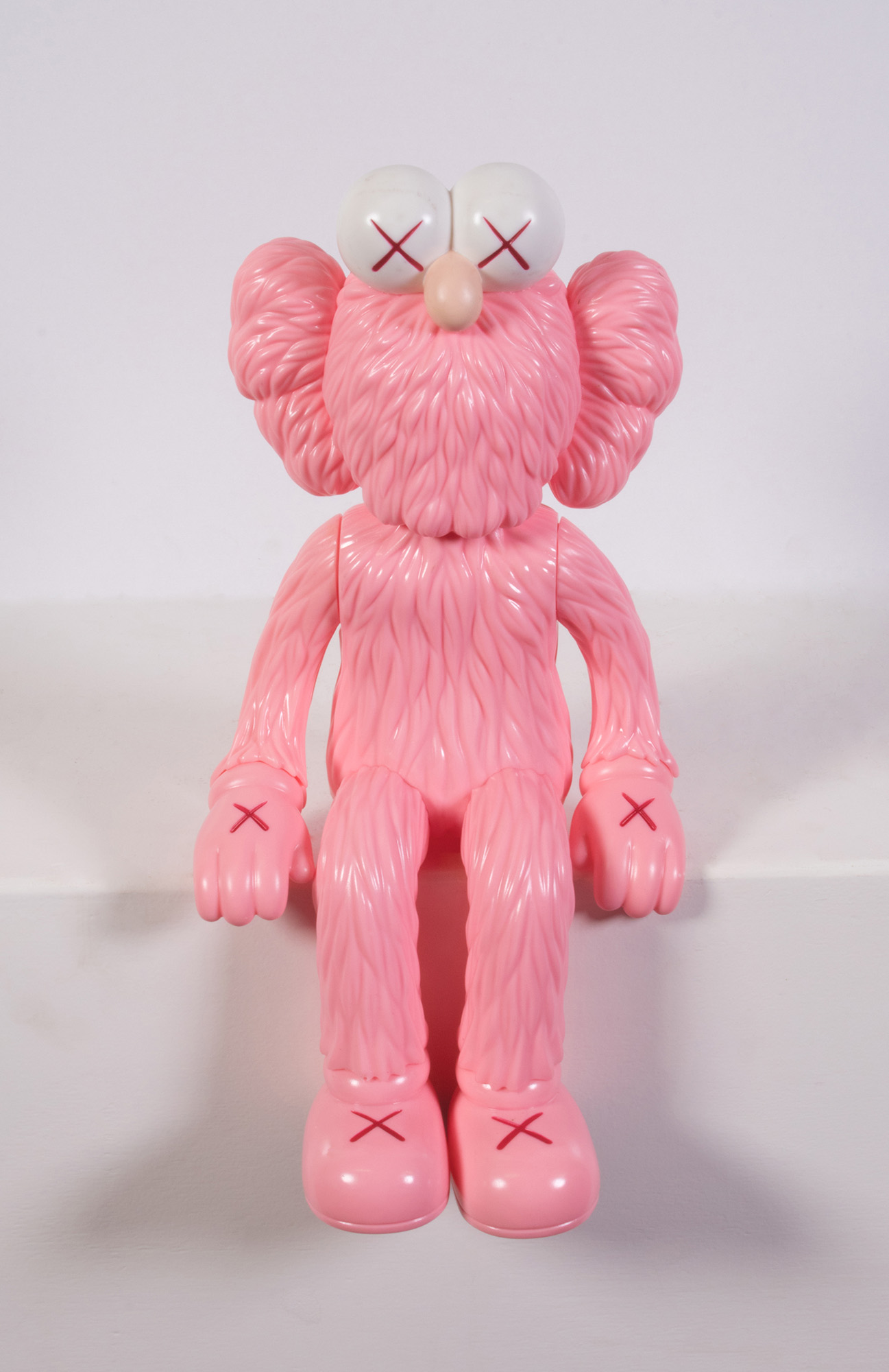 Kaws, Jersey City 1974, Seeing / Watching, 2016, Scultura in vinile verniciato, multiplo, rosa, cm. 35 h., Firma, data e scritta sotto i piedi: Kaws 16 / Open Edition / Medicom Toy / China., In custodia originale.