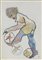Mino Maccari, Siena 1898 - Roma 1989, Figura, Tecnica mista su carta applicata su cartone, cm. 49,8x35, Firma in basso a destra: Maccari.