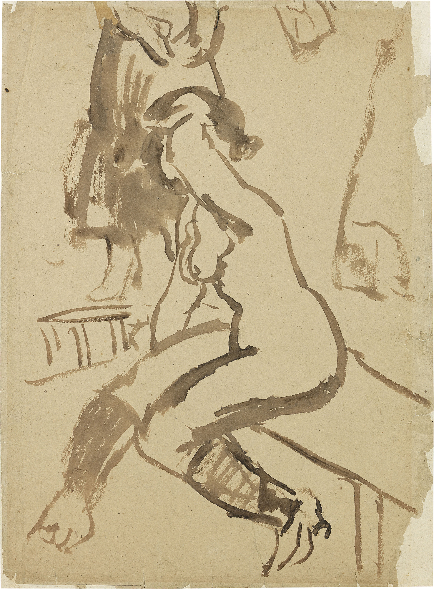 Michel Larionov, Tiraspol 1881 - Fontenay-aux-Roses 1964, Viaggio in Turchia (Nudo), 1910 ca., China su carta, cm. 48,5x35,5, , Storia, Collezione V.T. Zeginoj-Zonovoj, Mosca;, Collezione privata, , Certificato su foto di Gleb Pospelov in data 20.III.91., , Esposizioni, Avanguardie russe, a cura di Gabriella Di Milia, Milano, Fonte d'Abisso Arte, 4 aprile - 29 giugno 1991, cat. p. 49, illustrata a colori;, Arte russa e sovietica nelle raccolte italiane, Modena, Galleria Civica Palazzo dei Musei, 13 febbraio - 25 aprile 1993, cat. p. 26;, Avanguardia e ritorno. Arte russa 1900-1940, a cura di Gabriella Di Milia, Fonte d'Abisso Arte, Milano, 17 marzo - 11 giugno 1994, cat. p. 59, illustrata.