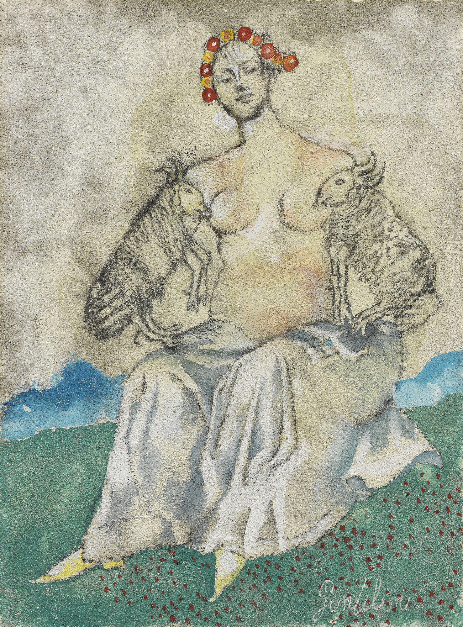 Franco Gentilini, Faenza (Ra) 1909 - Roma 1981, Decamerone, II, 4, 1974, Olio su cartone sabbiato applicato su tavola, cm. 32,5x24,3, , Firma in basso a destra: Gentilini. Al verso sul telaio: etichetta con n. 366 e timbro Galleria d'Arte Rizziero, Teramo (opera datata 1976)., , Storia, Galleria Rizziero, Teramo;, Collezione privata, , Foto autenticata dall'artista, Roma, 10 dicembre 1977., , Esposizioni, Gentilini, Teramo, Rizziero Arte, dal 7 giugno 1977, cat. n. 15., , Bibliografia, Luciana Gentilini, Giuseppe Appella, Gentilini. Catalogo generale dei dipinti 1923-1981, Edizioni De Luca, Roma, 2000, p. 621, n. 1405., , Il dipinto è il bozzetto per la terza delle undici acqueforti-acquetinte che illustrano il Decamerone, Milano, 1975.