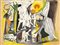 Renato Guttuso, Bagheria (Pa) 1912 - Roma 1987, Crocifissione (Omaggio a Picasso), 1966, Acrilico su carta applicata su tela, cm. 103,5x137,5, , Firma e data in basso al centro: Guttuso 66. Al verso sul telaio: etichetta XVI Biennale / Nazionale d'Arte / Imola: etichetta Condotti 75 / Studio d'Arte Contemporanea, con n. 619-17 (opera datata 1968): timbro Galleria Torbandena / Treviso., , Storia, Galleria Medea, Milano;, Studio d'Arte Condotti 75, Roma;, Toninelli Arte Moderna, Milano;, Collezione privata, Milano;, Collezione privata, , Certificato su foto di Fabio Carapezza Guttuso, Roma 5 ottobre 1997, con n. 1815410727., , Esposizioni, Renato Guttuso, Anversa, Kononlijk Museum voor Schone Kunsten, 21 gennaio 1968, cat. n. 27;, Renato Guttuso: Autobiografický Cyclus, Praga, Národní Galerie v Praze - Valdstejnská Jizdarná, febbraio 1968, cat. n. 27;, Guttuso, Amburgo, Hochschule für bildende Künste, 22 aprile - 31 maggio 1968, cat. n. 29, illustrato a colori;, Renato Guttuso. Immagini autobiografiche ed altre opere, Ferrara, Palazzo dei Diamanti, Galleria Civica d'Arte Moderna, 11 luglio - 8 settembre 1969, cat. n. 28;, Guttuso 1972, "Le visite" e altri dipinti, Milano, Toninelli Galleria Arte Moderna, maggio - giugno 1972, cat. p. n.n., illustrato a colori;, Guttuso dipinti recenti, Lorica, Saloni dell'Ente Sviluppo Sila, 5 - 31 agosto 1972, cat. p. n.n, illustrato a colori;, Guttuso 1973, Livorno, Galleria Il Fante di Picche, maggio 1973, cat. p. n.n., illustrato a colori;, Guttuso, Saint-Vincent, Grand Hotel Billia, 6 - 29 luglio 1973, cat. n. 2, illustrato a colori;, Renato Guttuso, Molin di Falcade, Studio Murer, estate 1974, cat. p. n.n., illustrato;, Renato Guttuso, Acqui Terme, Palazzo "Liceo Saracco", 7 - 28 settembre 1974, cat. p. n.n., illustrato;, Guttuso. Das Gastmahl, Francoforte, Frankfurter Kunstverein, 20 dicembre 1974 - 2 febbraio 1975, cat. n. 1;, Renato Guttuso: Erinnerungen an Picasso, Berlino, Akademie der Künste der Deutschen Demokratischen Republik, 7 marzo - 6 aprile 1975, cat. n. 1;, Renato Guttuso. Le visite e altri dipinti, Cortina D'Ampezzo, Galleria Farsetti, 26 dicembre 1976 - 9 gennaio 1977, cat. p. n.n., illustrato;, Renato Guttuso, Busto Arsizio, Italiana Arte, 13 ottobre - 27 novembre 1977, cat. p. n.n., illustrato;, Renato Guttuso, 20 opere dal 1975 al 1982, Galleria Farsetti, Focette, 6 agosto - 4 settembre 1983, cat. pp. 42-43, tav. IX, illustrato a colori., , Bibliografia, Werner Haftmann, Guttuso, immagini autobiografiche, Toninelli Arte Moderna, Milano-Roma, 1971, pp. 115, 139;, Renato Guttuso, Kunst und Gesellschaft, Henschelverlag, Berlino 1975, p. 15;, Enrico Crispolti, Catalogo ragionato generale dei dipinti di Renato Guttuso, vol. 3, Giorgio Mondadori, Milano, 1985, p. 29, n. 66/74., , L'opera fa parte del ciclo dell' Autobiografia.
