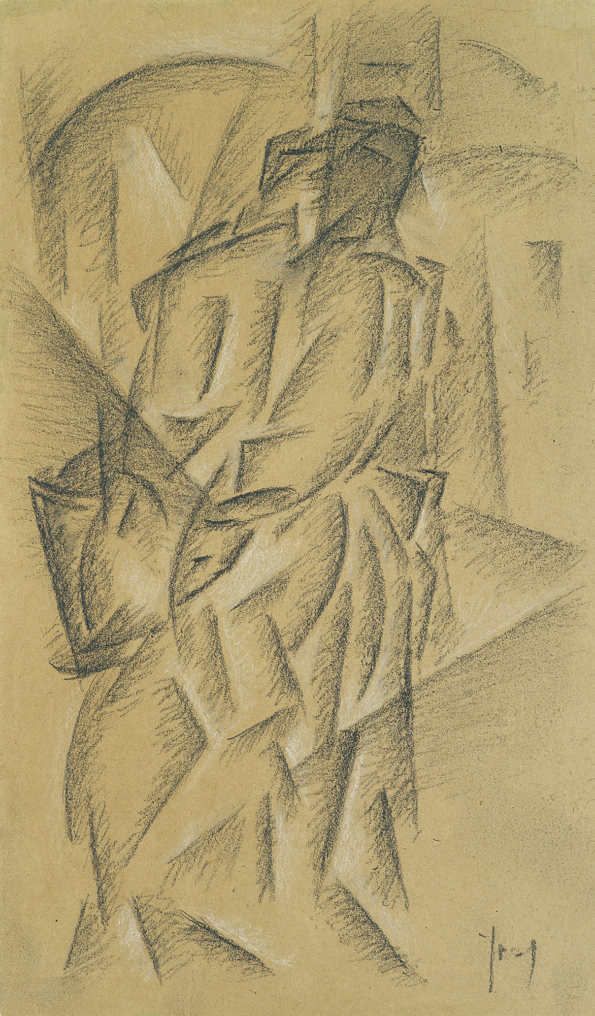 Roberto Marcello (Iras) Baldessari, Innsbruck 1894 - Roma 1965, Studio di figura 1, 1916 ca., Matita e biacca su carta, cm. 29,2x17,8, , Firma in basso a destra: Iras., , Certificato con foto Archivio Unico per il Catalogo delle Opere Futuriste di Roberto Marcello Baldessari, Rovereto, 18 marzo 2005, con n. B16 - 60., , Esposizioni, Baldessari, Opere 1915 - 1934, a cura di Maurizio Scudiero, Cortina d'Ampezzo, Galleria d'Arte Frediano Farsetti, 27 dicembre 2008 - 7 gennaio 2009, poi Milano, Farsettiarte, 15 gennaio - 14 febbraio 2009, cat. n. 23, illustrata a colori.