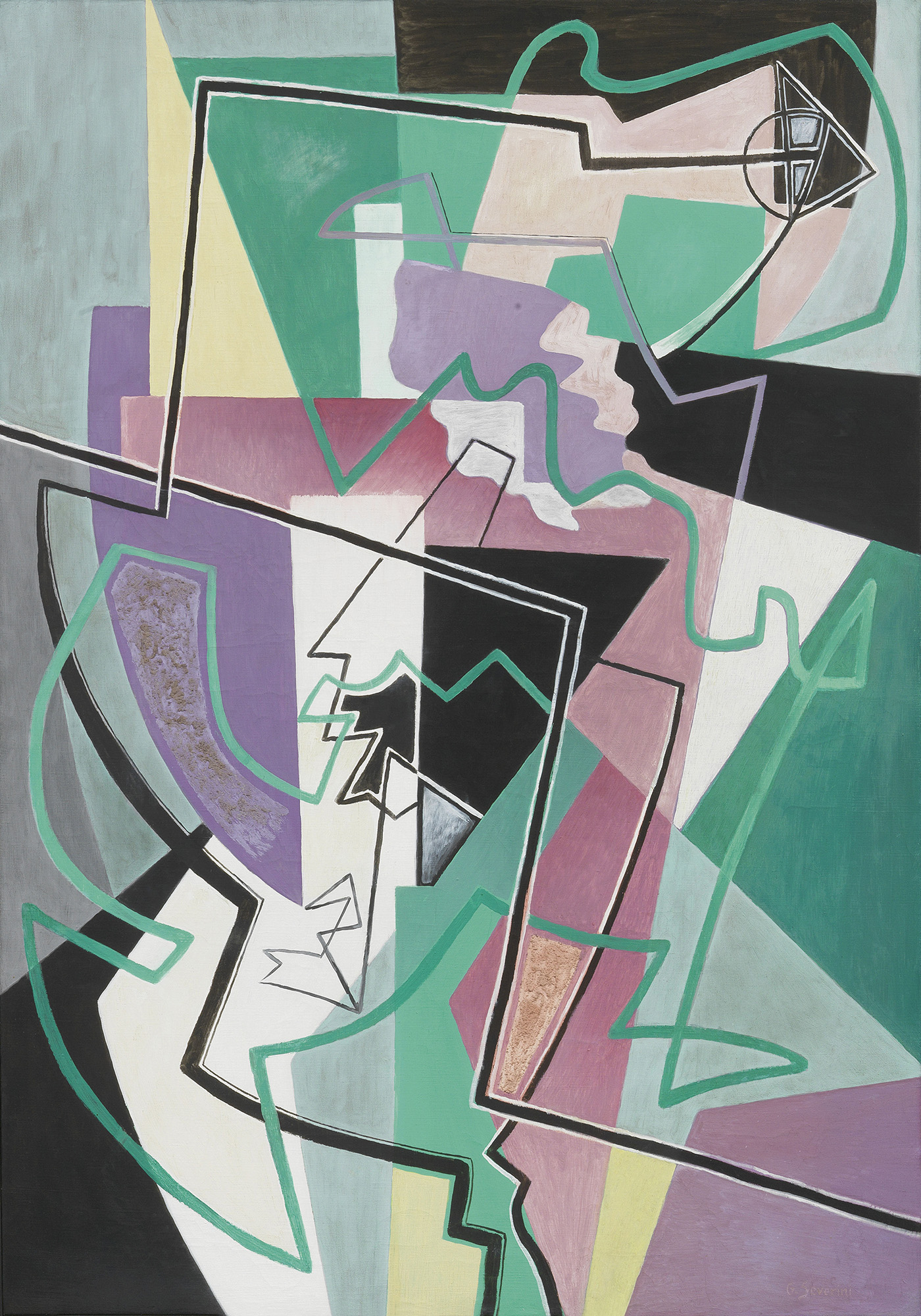 Gino Severini, Cortona (Ar) 1883 - Parigi 1966, Danseuse et Polichinelle 2 (Deliciae populi), 1951, Olio e tecnica mista su tela, cm. 116x80,3, , Firma in basso a destra: G. Severini; luogo, numero, titolo e data al verso sulla tela: Meudon / 87 / "Danseuse et / Polichinelle" / (Deliciae populi) / Decembre 1951; sul telaio: due etichette [X]XVI Esposizione Biennale Internazionale d'Arte - Venezia 1952: due etichette IV Biennale d'Arte di San Paolo 1957: etichetta di trasportatore con indicazione Mostra Arte in Toscana '45-'47 Palazzo Strozzi dal 25/1 al 5/5/02: etichetta Grosvenor Gallery, London, cat. 28: etichetta Musée National / d'Art Moderne, con n. 84., , Storia, Collezione Severini, Parigi;, Collezione privata, , Esposizioni, XXVI Esposizione Biennale Internazionale d'Arte, Venezia, 1952, sala XVII, cat. p. 127, n. 8 (con titolo Deliciae Populi: Ballerina e Pulcinella);, Severini, New York, The Cadby-Birch Gallery, 9 febbraio - 7 marzo 1953;, Savremena Italijanska Umetnost Slikarstvo Skulptura, Zagabria (poi Lubiana, Skopje e Belgrado), 1956-57, cat. n. 72;, IV Bienal do Museu de Arte Moderna, San Paolo, settembre - dicembre 1957, cat. n. 154;, Mostra antologica di Gino Severini, Roma, Palazzo Venezia, 13 maggio - 4 giugno 1961, cat. n. 144;, Severini, Milano, Galleria Blu, novembre 1963, cat. n. 15;, Gino Severini, Torino, Galleria La Bussola, dall'11 gennaio 1964;, XXII Salon de Mai, Parigi, Musée d'Art Moderne de la Ville de Paris, 2 - 22 maggio 1966, cat. n. 187;, Gino Severini, Parigi, Musée National d'Art Moderne, luglio - ottobre 1967, cat. n. 84;, Gino Severini (1883-1966). Retrospective Exhibition of Paintings, Sculpture, Drawings and Graphic Work from 1910 to 1965, Including Futurist and Cubist Work, Londra, Grosvenor Gallery, 3 - 29 giugno 1969, cat. n. 28;, X Quadriennale Nazionale d'Arte, Roma, Palazzo delle Esposizioni, novembre 1972 - maggio 1973, cat. p. 147, n. 18 (opera datata 1950);, Omaggio a Gino Severini, Milano, Centro Rizzoli, dal 12 febbraio 1973, cat. n. 23;, Gino Severini, Dortmund, Museum am Ostwall, 7 marzo - 25 aprile 1976, cat. n. 66;, Il tempo di Gino Severini, Bologna, Galleria Marescalchi, aprile - maggio 1981, cat. p. 100;, Gino Severini, a cura di Maurizio Fagiolo dell'Arco e Daniela Fonti, Milano, Galleria Philippe Daverio, 1982-83, cat. n. 25;, Gino Severini (1883-1966), a cura di Renato Barilli, Firenze, Palazzo Pitti, 25 giugno - 25 settembre 1983, cat. pp. 136, 183, n. 99, illustrato a colori (con titolo Danzatrice e Pulcinella);, Continuità. Arte in Toscana 1945-1967, a cura di Alberto Boatto, Firenze, Palazzo Strozzi, 26 gennaio - 5 maggio 2002, cat. pp. 60, 165, illustrato a colori., , Bibliografia, Piero Pacini, Gino Severini. I diamanti dell'arte 22, Sadea/Sansoni Editori, Firenze, 1966, n. 63 (opera datata 1950);, Maurizio Fagiolo dell'Arco, Tutta la vita di un pittore, in Gino Severini, prima e dopo l'opera. Documenti, opere ed immagini, Electa Editrice, Milano, 1983, p. 74;, Pier Luigi Siena, Gillo Dorfles, Severini, Nuove Edizioni Gabriele Mazzotta, Milano, 1987, p. 18;, Daniela Fonti, Gino Severini. Catalogo ragionato, Mondadori - Daverio, Milano, 1988, p. 543, n. 888.