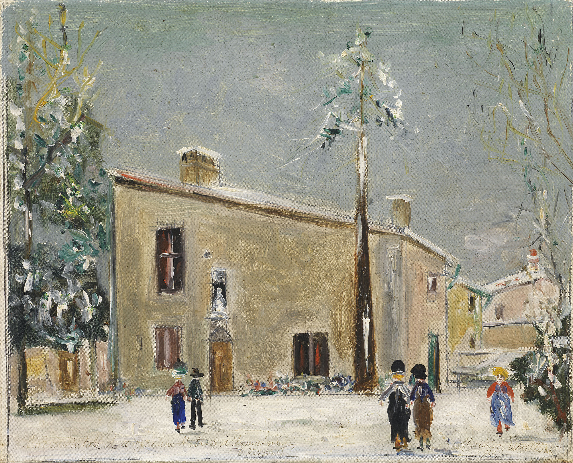 Maurice Utrillo, Parigi 1883 - Dax 1955, Maison natale de Jeanne d'Arc à Domrémy, 1933, Olio su tela, cm. 35x43, , Firma e data in basso a destra: Maurice, Utrillo, V. / 1933; titolo in basso a sinistra: Maison Natale de «Jeanne d'Arc» à Domrémy (Vosges). Al verso sul telaio: etichetta e timbro Galleria Gissi, Torino, con n. 3154., , Certificato Gilbert Pétrides (Galerie Gilbert et Paul Pétridès, n. 26.519), Parigi, 19 marzo 1999, controfirmato da Jean Fabris in data 24 marzo 1999., , Esposizioni, Maurice Utrillo, Cortina d'Ampezzo, Galleria d'Arte Frediano Farsetti, 26 dicembre 2000 - 8 gennaio 2001, cat. n. 12, illustrato a colori;, Aria di Parigi ad Arezzo: Maurice Utrillo, Arezzo, Galleria Comunale d'Arte Contemporanea, Sala Sant'Ignazio, 23 febbraio - 1 aprile 2001, cat. n. 12, illustrato a colori;, Art Club, San Miniato, Casa d'Arte San Lorenzo, 15 maggio 2006;, Maurice Utrillo. La città ragionata, Milano, Galleria del Mappamondo, 24 ottobre - 24 dicembre 2007, cat. pp. 80, 81, n. 8, illustrato a colori.