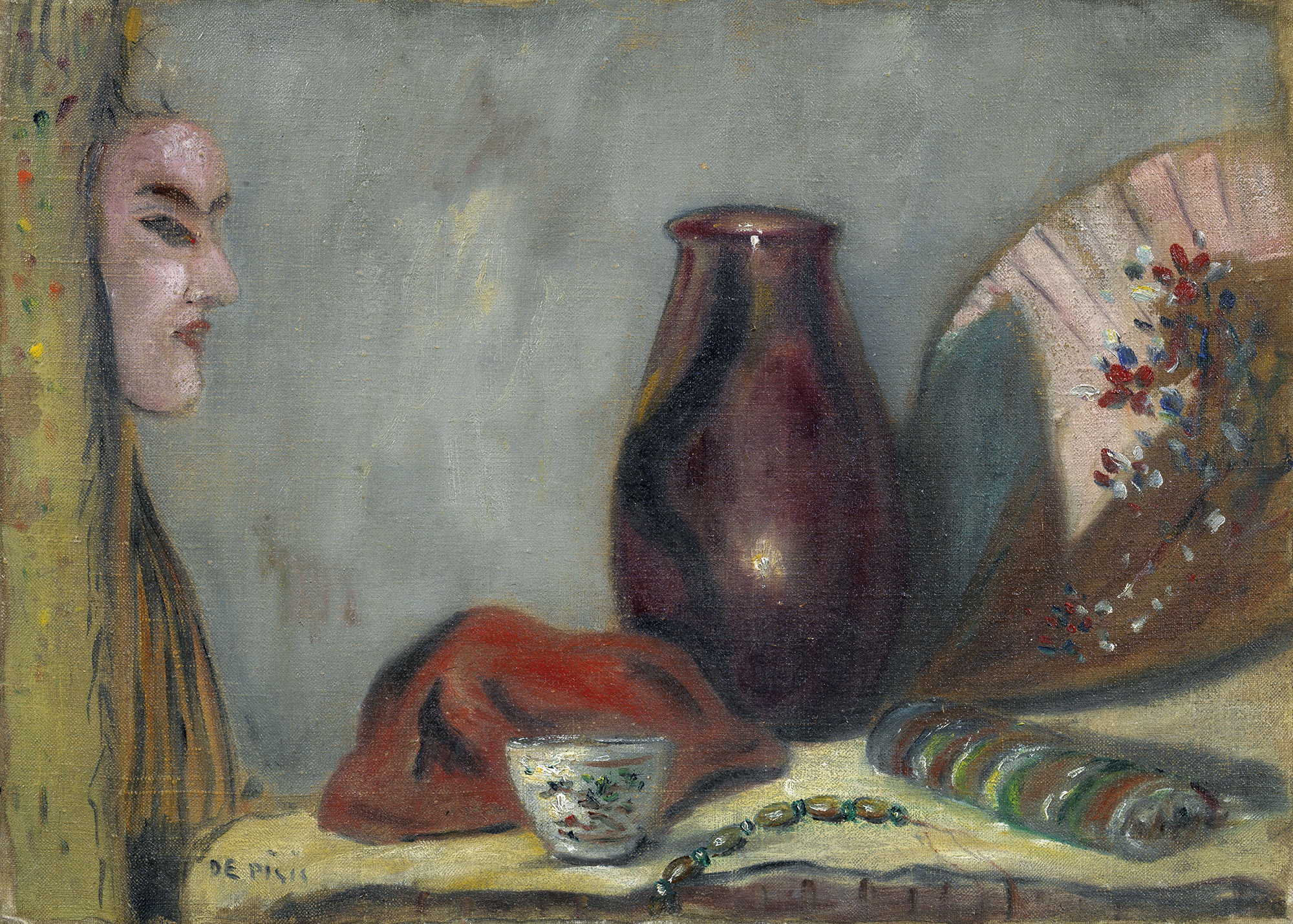 Filippo de Pisis, Ferrara 1896 - Milano 1956, Natura morta con maschera, 1926, Olio su tela, cm. 50x70, , Firma in basso a sinistra: de Pisis. Al verso sulla tela: etichetta e firma Il Ridotto Galleria d'Arte Moderna, Torino; sul telaio: etichetta Galleria Bonaparte, Milano, con n. 2922., , Storia, Collezione Pero, Milano;, Collezione privata, , Esposizioni, De Pisis, didascalie per un pittore, a cura di Luigi Cavallo, Milano, Brerarte, 18 maggio - 18 giugno 1983, cat. p. 81, illustrato a colori (opera datata 1928);, Filippo de Pisis, Pittura primo Amore, a cura di Luigi Cavallo, Milano, Farsettiarte e Galleria Tega, 23 marzo - 8 maggio 2010, cat. pp. 78-79, n. 15, illustrato a colori;, Firenze-New York. Rinascimento e Modernità. Da Luca Signorelli a Andy Warhol, Firenze, Galleria d'Arte Frediano Farsetti, 30 settembre - 10 dicembre 2011, cat. n. 19, illustrato a colori;, Filippo de Pisis 1896-1956. Diario senza date, a cura di Claudio Spadoni e Daniela Grossi, Riccione, Villa Franceschi Galleria d'Arte Moderna e Contemporanea e Rimini, Villa Mussolini, 28 giugno - 2 settembre 2012, cat. pp. 40, 110, n. 8, illustrato a colori;, Filippo de Pisis. Eclettico connoisseur fra pittura, musica e poesia, Torino, Museo Ettore Fico, 24 gennaio - 22 aprile 2018, cat. p. 108, illustrato a colori;, Dal caso Nolde al caso de Chirico, a cura di Demetrio Paparoni, Farsettiarte, Cortina d'Ampezzo, 8 - 30 agosto 2020, poi Milano, 1 - 30 ottobre 2020, cat. n. 8, illustrato a colori., , Bibliografia, Sandro Zanotto, Filippo de Pisis: l'intonazione letteraria, in "Terzoocchio", Bologna, giugno 1983, p. 18;, Giuliano Briganti, De Pisis. Catalogo generale, tomo primo, opere 1908-1938, con la collaborazione di D. De Angelis, Electa, Milano, 1991, p. 133, n. 1926 129.