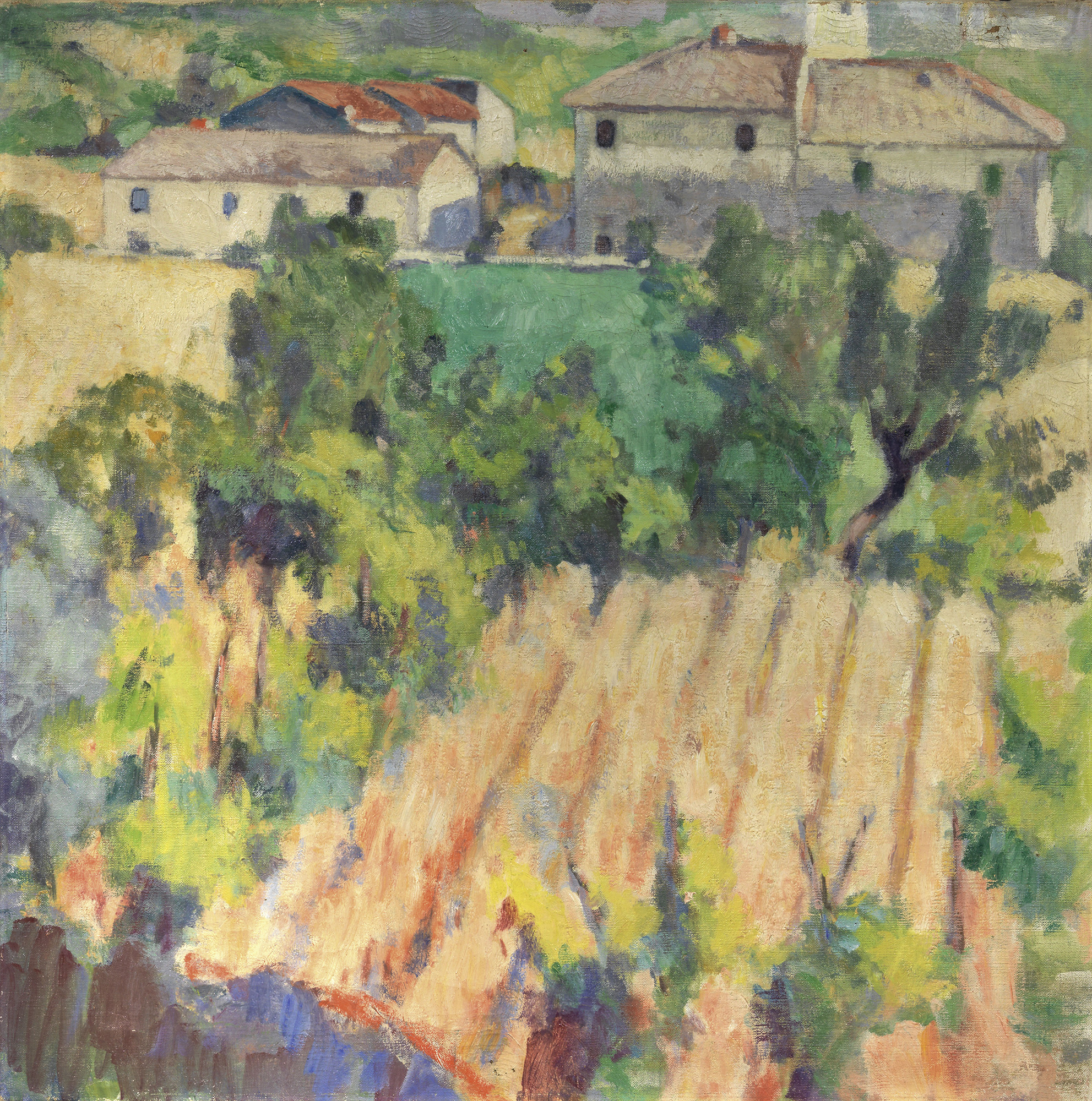 Ardengo Soffici, Rignano sull'Arno (Fi) 1879 - Vittoria Apuana (Lu) 1964, Paesaggio, (1910), Olio su tela, cm. 69x69, , Al verso sul telaio: etichetta Società per le Belle Arti ed Esposizione Permanente / Milano / Ardengo Soffici 1879-1964 / 18 settembre - 18 ottobre 1992 / cat. 10: timbro Società per le Belle Arti ed Esposizione Permanente, Milano: etichetta Comune di Acqui Terme / Ardengo Soffici / Mostra antologica / Palazzo "Liceo Saracco" 5 Luglio - 13 Settembre 1992, cat. n. 10., , Storia, Collezione Scipio Slataper, Trieste; Collezione Elsa Oblach, Trieste;, Collezione Giani Stuparich, Trieste;, Galleria Torbandena,Trieste; Collezione privata, , Esposizioni, Ardengo Soffici, a cura di Luigi Cavallo, Acqui Terme, Palazzo Liceo Saracco, 4 luglio - 13 settembre 1992, poi Milano, Palazzo della Permanente, 18 settembre - 18 ottobre 1992, cat. n. 10, illustrato;, Aria di Parigi. Tre toscani a La Ruche, Soffici, Modigliani, Viani, a cura di Luigi Cavallo, Cortina d'Ampezzo, Galleria d'Arte Frediano Farsetti, 7 - 31 agosto 2003, poi Milano, Farsettiarte, 24 settembre - 21 ottobre 1993, cat. n. 11, illustrato a colori., , Bibliografia, Giuseppe Raimondi, Luigi Cavallo, Ardengo Soffici, Nuovedizioni Enrico Vallecchi, Firenze, 1967, n. 123, tav. CCCXVIII.