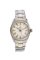 Cassa Oyster in acciaio con lunetta godronata e fondello a vite. Quadrante bianco con indici geometrici applicati e numeri romani serigrafati. Indicazione centrale dei secondi continui.