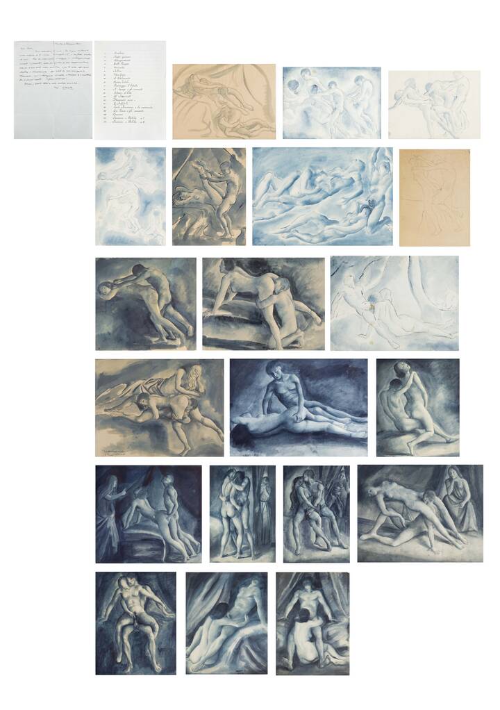 da 31x43 a 25x31cm (variabili) lotto di venti disegni a soggetto erotico