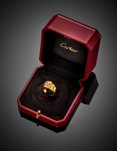 CARTIER Anello "Panthère" in oro giallo, g 12,73 circa misura 10/50. Firmato Ca