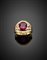 Cushion shape ct. 4.40 circa ruby and diamond yellow gold ring, diamonds in all ct. 1.10 circa, g 7.91 circa size 14/54.