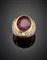 Diamond in all ct. 4.70 circa and ruby in all ct. 0.80 circa bi-coloured gold ring centering a big oval red corundum, g 44.70 circa size 17/57. (slight defects)