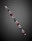 Bracciale in oro bianco con diamanti per complessivi ct. 3 circa e distanziatori in zaffiri e rubini scolpiti, g 27,66 circa, lungh. cm 17,60 circa.