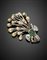 Spilla floreale con doppietta verde, perle irregolari, diamanti old mine di ct.