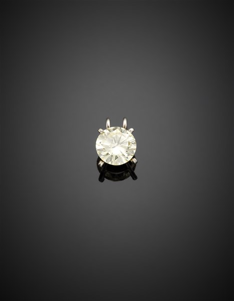 Pendente in oro bianco con diamante rotondo taglio a brillante di ct. 2,44, g 1,78 circa, lungh. cm 1,10 circa.