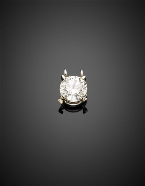 Round brilliant cut ct. 3.25 diamond white gold pendant, g 2.30 circa, length cm 1.40 circa.