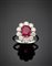 Anello in oro bianco con rubino ovale di ct. 2,95 e diamanti rotondi per comple