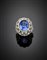 Anello in platino con diamanti a contornare uno zaffiro ovale di ct. 8,20 circa
